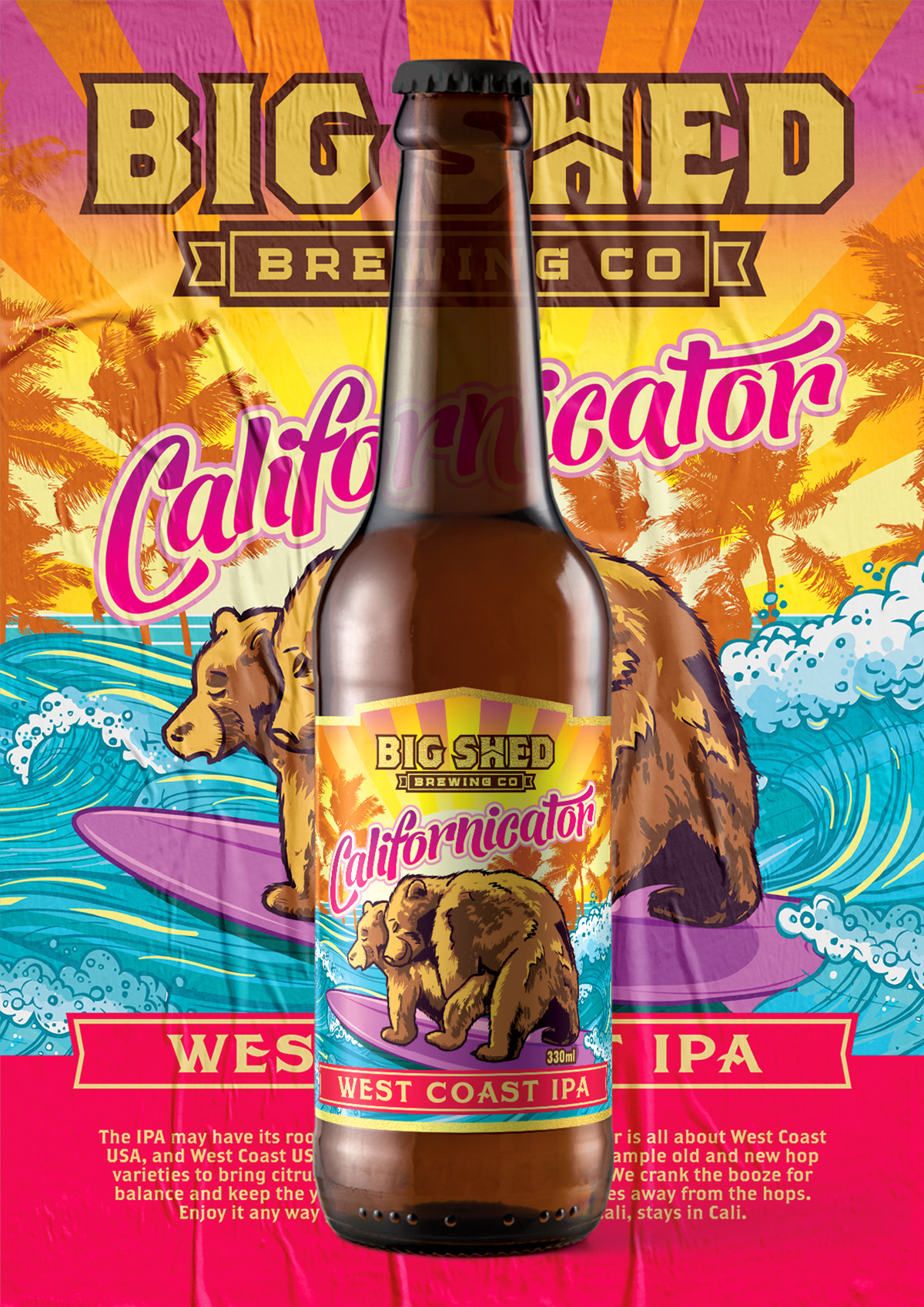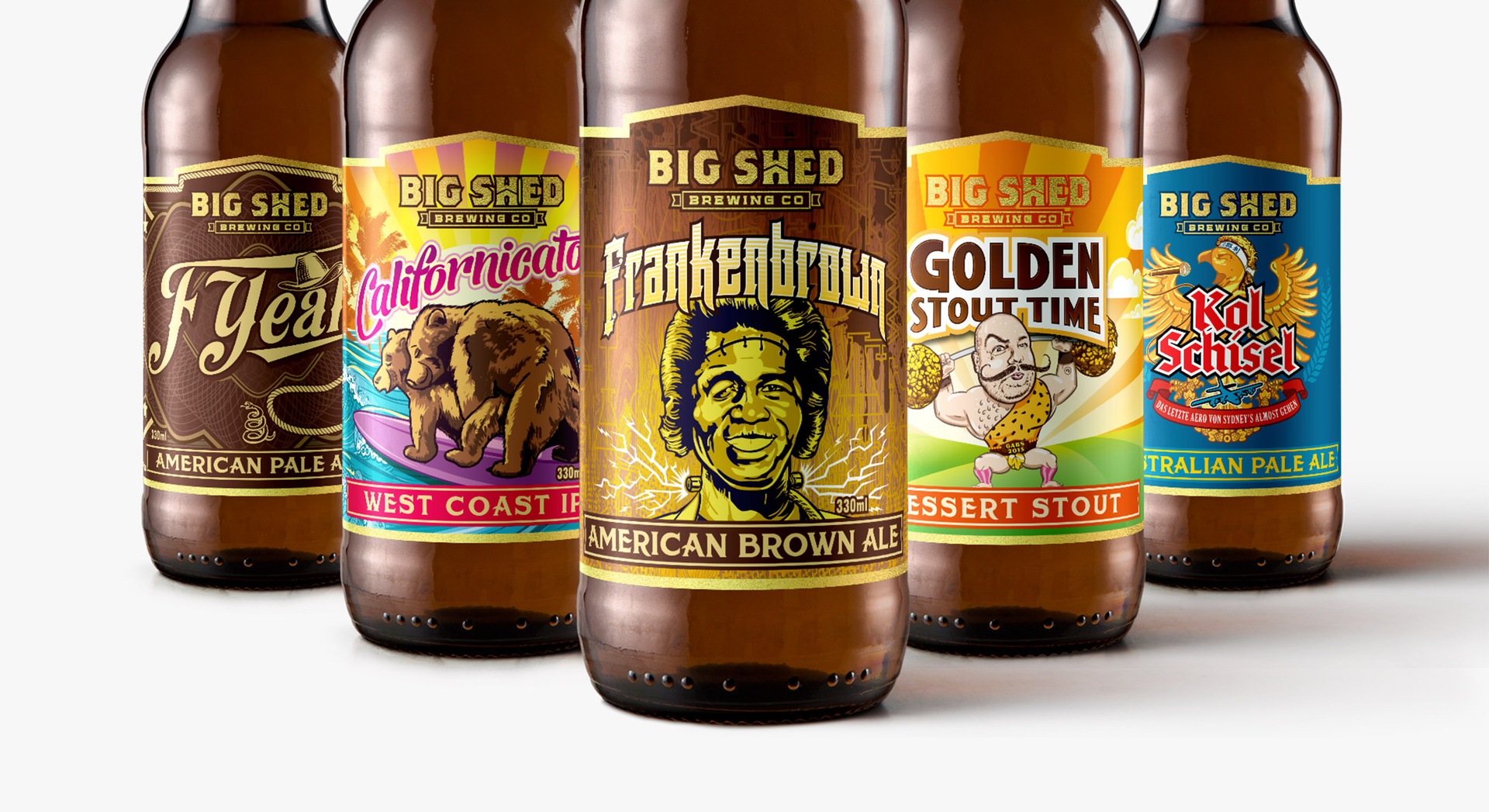 Our team worked with Jason and Craig when there was no big shed. In fact it wasn’t even a small shed, it was an industrial shoebox at Royal Park. But the dream was real and the beer was great! We designed the Big Shed brand and core range of iconic labels including F-Yeah, Frankenbrown, Californicator, Kol Schisel, Golden Stout Time and Cherry Popper.